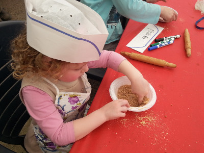 כל ילד קיבל כובע של שף, סינר כדי לא יתלכלך (חשוב מאד!!), הכין עיסה של שוקולד, אח"כ קישט עציץ קטן (כוס) ומילא בעיסה ולסיום קישט בסוכריות.