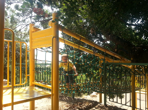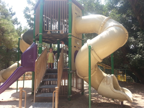 ראשית הגענו לגן שעשועים נחמד לילדים, עם מתקני כושר וספורט, מגלשות וסולמות והכל בצל, בלב היער הקסום.