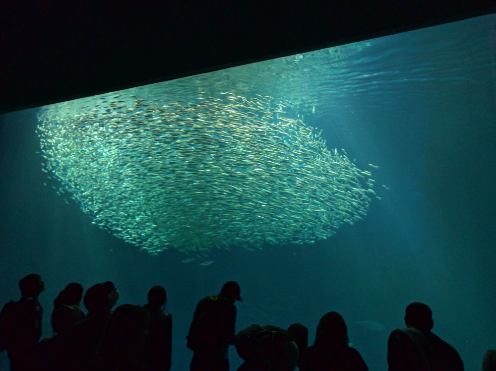 תצוגת הסרדינים: אקווריום ענק שבתוכו להקת סרדינים גדולה וגם (נדמה לי) כריש או שניים ועוד כמה דגים שאני לא זוכרת מה שמם… בסוף היום הילדים אמרו שזו הייתה התערוכה הכי מרשימה.