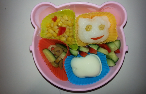 את הביצה הכנסנו לתבניות של האורז ולא הבנו למה היא בורחת מהקצה השני כל פעם.