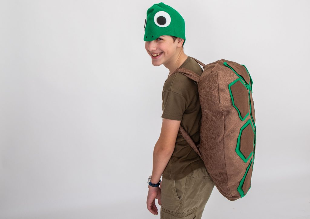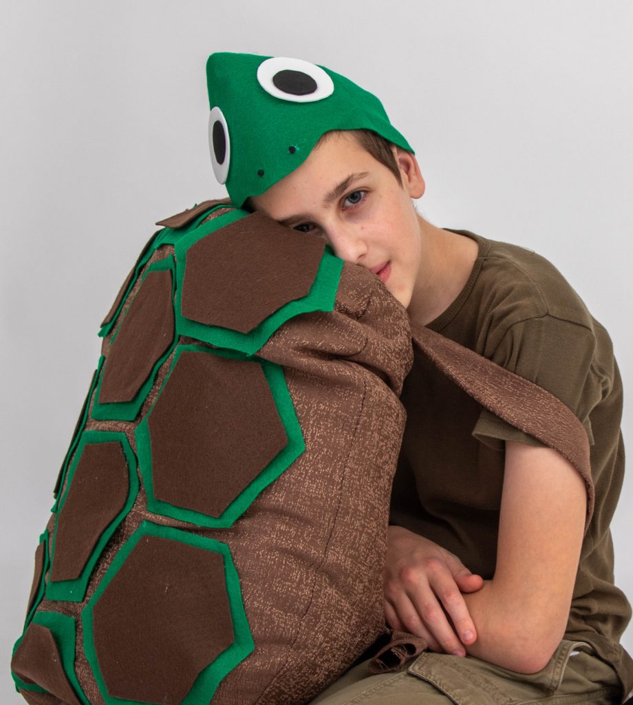 כולנו הסכמנו פה אחד שתחפושת של צב מאד מתאימה למתן, למרות שפורים אמור להיות "ונהפוך הוא…", אבל הילד ביקש מי אני שאאכזב אותו?