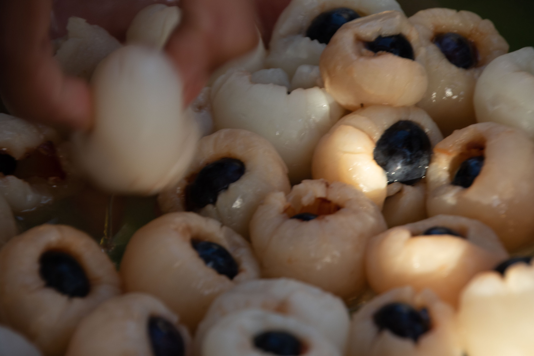 את העין הכנתי מליצי שבתוכו הכנסתי טיפת ריבת תות ואוכמנית.