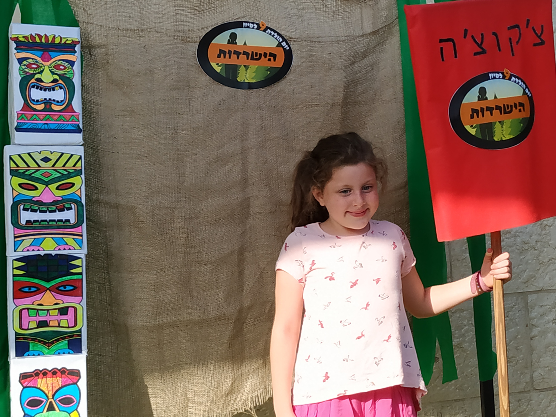 קישטנו בחתיכת שק שעליה הדבקנו את לוגו ההישרדות הפרטי שלנו, שהכינה לנו חברתי המקסימה דקלה, וזה היה סוג של "קיר סלפי" בעצם.