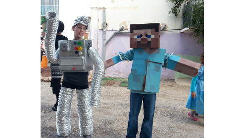 מהגן של סיון עברתי לבקר בכיתה של מתן. בשניה שפתחתי את הדלת מצאתי את עצמי עומדת ומולי כ-16 בנים עם אקדחים, חרבות וכלי נשק מסוגים שונים שלופים לעברי… לצערי זה מה שקורה בישראל כשהילד לומד בכיתת בנים. האמת? על אף שהיה מדובר בתחפושות זה היה מבהיל.
