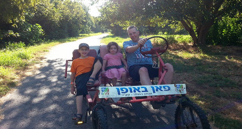 אספוש בחר לעצמו אופניים כך שיוכל להיות חופשי ולרכב באיזו מהירות שמתחשק לו, וחוץ ממנו לקחנו אנחנו אופניים משפחתיים כך שסיון ומתן ישבו להם בכיף ואמיר ואני דיוושנו עבורם.