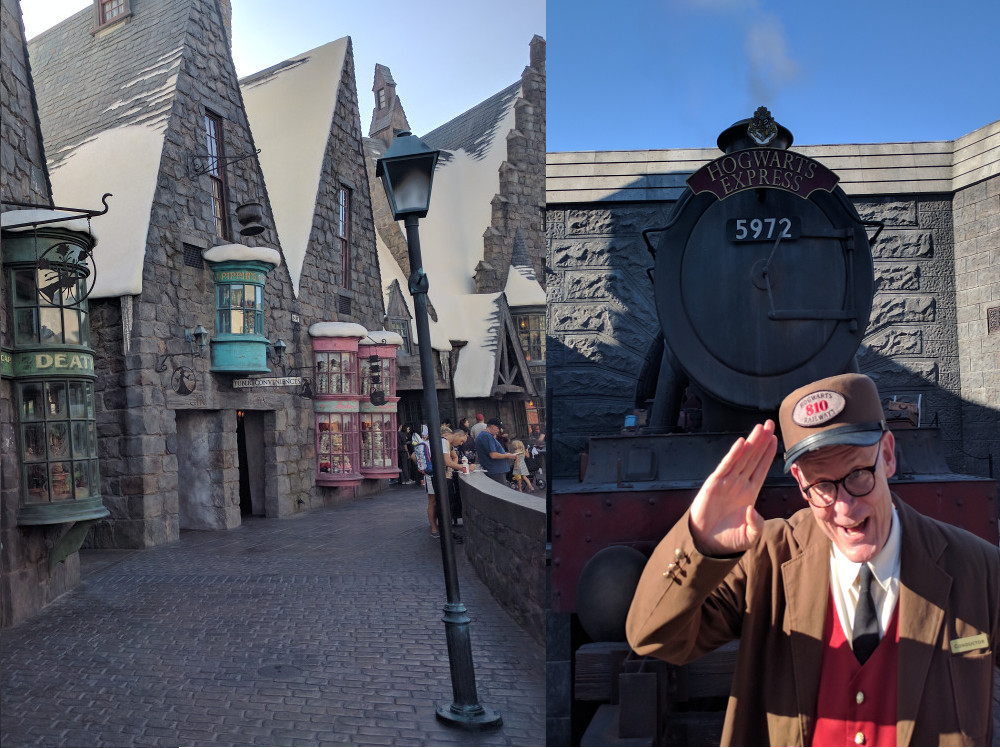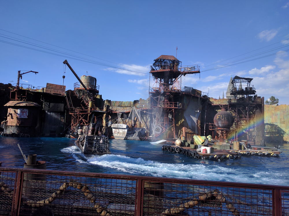 המתקן המדהים ביותר במתחם זה – ולדעת כולנו גם בפארק כולו – היה רכבת ההרים של הארי פוטר: רכבת הרים משולבת הדמיית תלת מימד. ישבנו זה לצד זה כשהרגליים משתלשלות למטה באויר, הרכבנו משקפי תלת מימד, וכשהרכבת התחילה בנסיעתה נכנסנו אל תוך הקסם. דרקונים התעופפו סביבנו, רכבנו על המטטא לצדו של הארי וחבריו, שיחקנו סקווידיץ', ריחפנו בין ההרים היפהפיים ונלחמנו בענקים ומפלצות כדי להציל את העולם… מדהים!!
