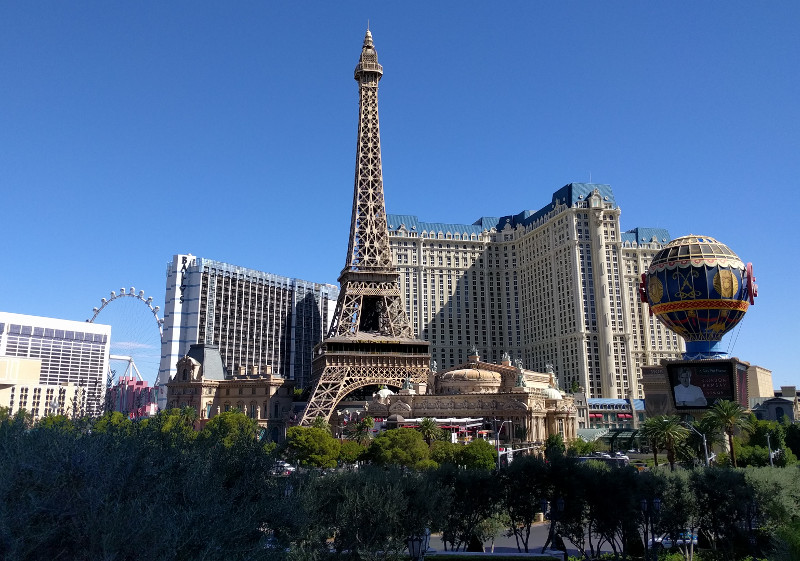 בסיור שלנו לאורך הסטריפ הצצנו במלונות השונים, למשל מלון פריז שהאטרקציה בו היא העתק מוקטן של מגדל אייפל בגובה יותר מ 40 קומות שאפשר (בתשלום כמובן) לעלות במעלית לראשו ולצפות על כל העיר.