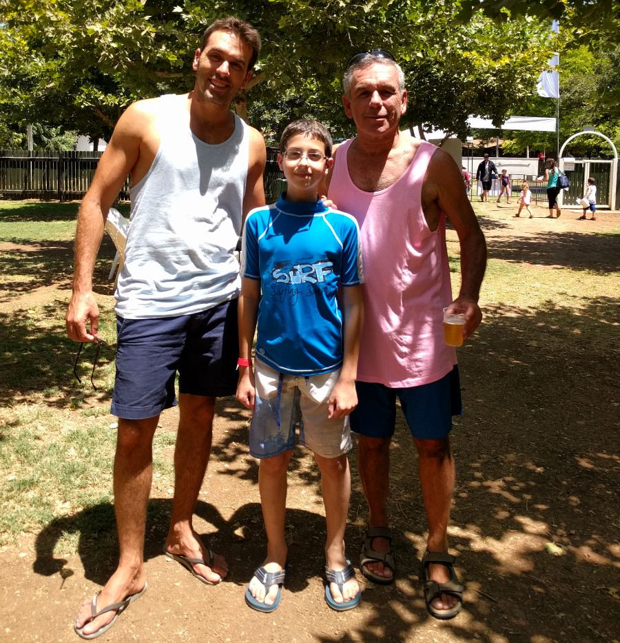 כשהגענו לקייקי כפר בלום גילינו שגם חלק ממשתתפי התוכנית "המירוץ למיליון" חוגגים שם, והילדים מאד התלהבו לפגוש אותם. לעומת הביקור של רוב הזוגות, זה של הזוג עמית ורז גל, האב ובנו, בקייקי כפר בלום איננו חד פעמי, הסתבר לנו. שניהם מהווים חלק מצוות האתר, ובו הם גם ביצעו חלק ניכר מאימוניהם טרם היציאה למירוץ. אנחנו מקווים שהם יגיעו רחוק.