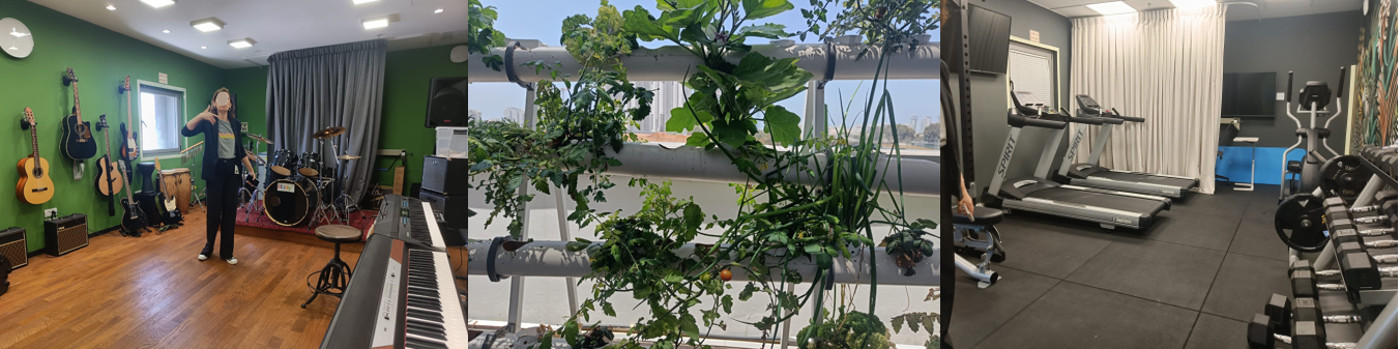 חדר מוזיקה לאלה שאוהבים לנגן או לשיר, חדר כושר ומגרש כדורסל לעובדים הספורטיביים, גינה הידרופונית לחובבי החקלאות, חדר גיימינג עם PS ו-VR, חדר יופי עם מניקור/פדיקור וגם ספרית שמגיעה כל שבוע, ועוד.