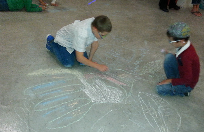 בחדר נוסף שבהמשך השביל ראינו את אמנות הציור על מדרכות, שם הפכנו לאמנים בעצמנו וציירנו את חיי הים. מתני שלי וחברו אמיר ציירו מפלצת ים ענקית ומפחידה, ילדים אחרים ציירו דגים, מדוזות, תמנונים ואפילו פיל-ים אחד. כיף לראות ילדים משתמשים בדמיון שלהם ויוצרים בכיף!