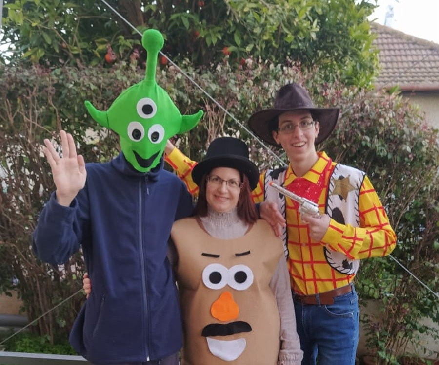 אם כבר "צעצוע של סיפור" אז אני החלטתי להתחפש ל"מר תפוח אדמה". קודם כל, כולנו קצת מרגישים כמו בטטות אחרי כל הסגרים שהיו פה, ודבר שני – בפורים צריך לצחוק כמה שיותר ואין מי שיראה אותי בתחפושת הזאת ויצליח שלא לחייך…