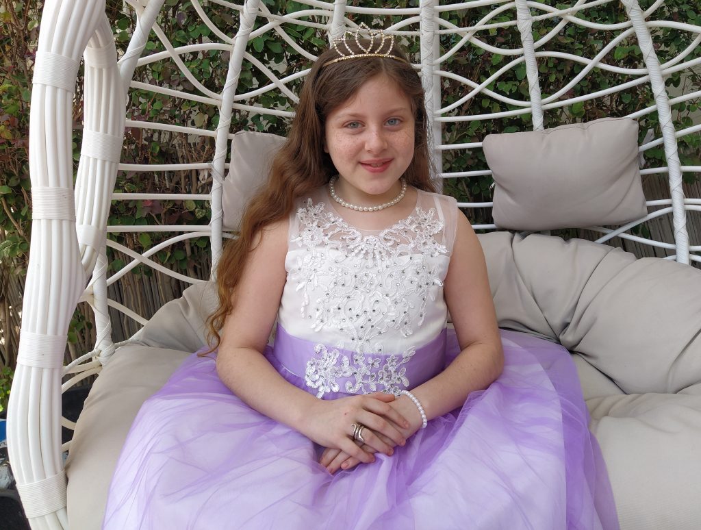 סיון החליטה כבר מזמן שהיא רוצה להתחפש למלכה, וביקשה שאקנה לה שמלה מפוארת שהיא תוכל ללבוש מעל הקרינולינה שהכנתי לה ביום ההולדת שלה. הכי קל.
