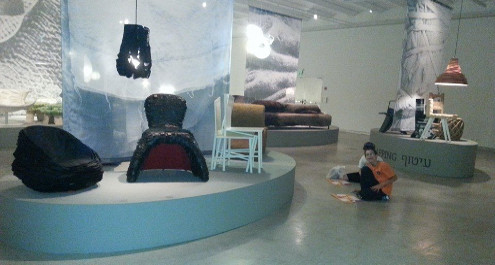 למרות המצב והאזעקות והכניסה והיציאה מהממ"ד מדי פעם, אנחנו החלטנו להמשיך בשגרה לעת עתה והיום נסענו לבקר בתערוכה החדשה "קיפולים" במוזיאון העיצוב חולון.