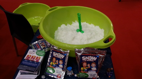 * שלג בשניות של חברת BooKid Toys – הלהיט החדש מארצות הברית: הכנת שלג מאבקה בשניות! רק מוסיפים מים והשלג מוכן. (לגבי השלג הזה אני חייבת לציין שהוא כבר קיים שנים בארץ בניסויים המדעיים של חברתי ענבל ישראל מכשהיצירה פוגשת במדע, ולדעתי הרבה יותר נחמד לקרוא ולהסביר לילדים את החלק המדעי של הניסוי כשמציגים להם אותו, אבל נחמד גם לראות מה מיתוג נכון יכול לעשות למוצר…).