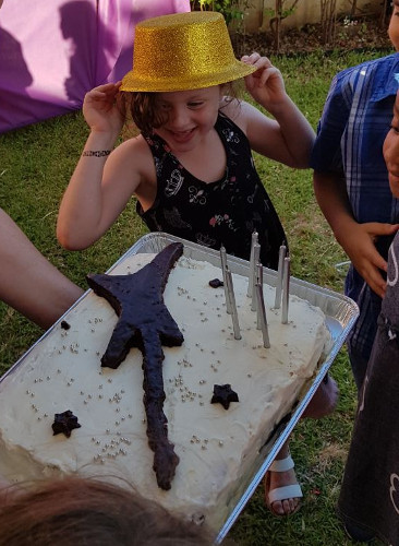 בערך באמצע המסיבה הגיעה הפיצה שהזמנו מבעוד מועד ועשינו הפסקת אוכל שאחריה, כמובן, ערכנו את טקס יום ההולדת. סיון כיבתה את הנרות שעל העוגה והביעה משאלה, כל ילד בירך אותה בתורו וגם הרמנו אותה 7 פעמים ועוד פעם לשנה הבאה. היה מרגש מאד.