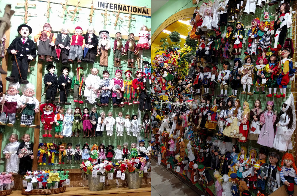 נכנסנו גם לחנות גלריה קטנה בשם הלא מפתיע Art shop. מבחוץ נראית כמו סתם עוד חנות מזכרות, אבל מבפנים היא ממש מוזיאון אמנות צנוע עם אוסף נכבד של גיטרות פיצפונות ומיוחדות, שעונים מכל הסוגים וכמובן – מריונטות!