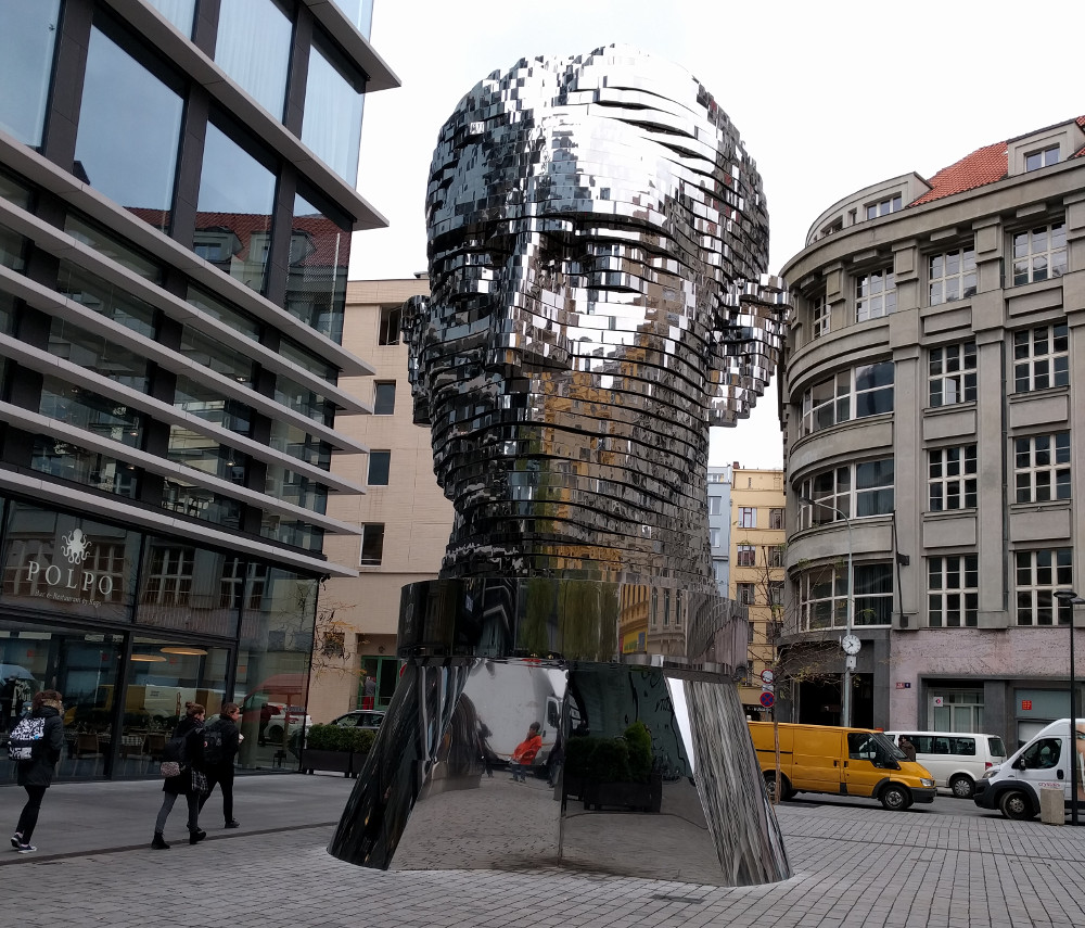 אחד הפסלים המעניינים שנתקלנו בו לגמרי במקרה ניצב ליד מרכז הקניות Quadrio. מדובר בפסל מכני גדול, פרי יצירתו של הפסל דויד צ'רני, אשר מציג את ראשו של הסופר היהודי-צ'כי הידוע פרנץ קפקא כשהוא "פרוס" לפרוסות, כל אחת מהן בנויה מאלפי חתיכות ברזל, שמסתובבות כל אחת לחוד ותוך כדי סיבובן מפרקות ומרכיבות את ראשו של קפקא שוב ושוב.