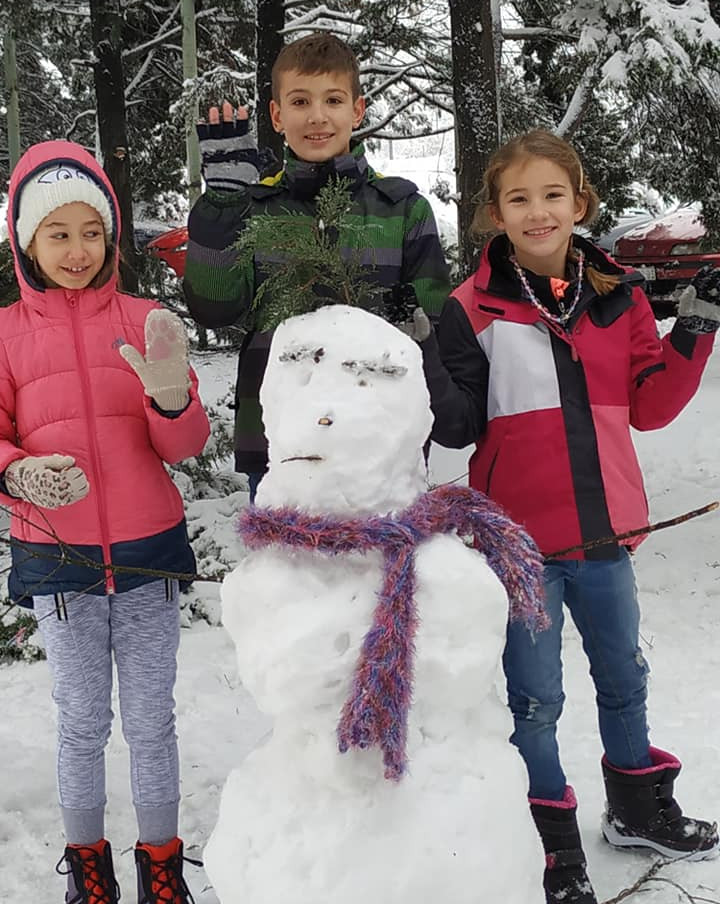 כמו כן פגשנו בדרך שלושה ילדים חמודים שבדיוק התחילו לבנות איש שלג והסכימו שנצטרף אליהם ונעזור להם, חוויה כייפית במיוחד שמצטרפת ללא ספק לרשימת הדברים שעשינו בפעם הראשונה בטיול הזה.