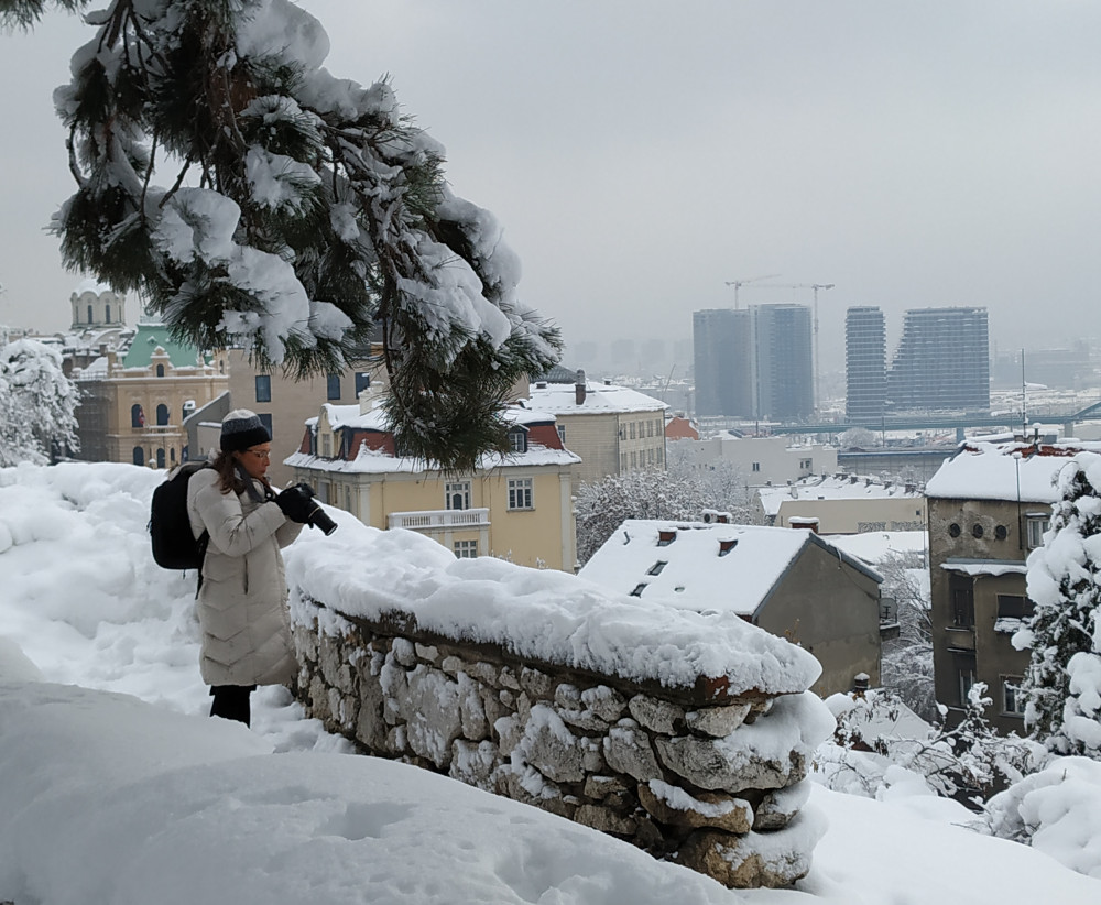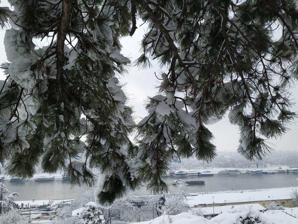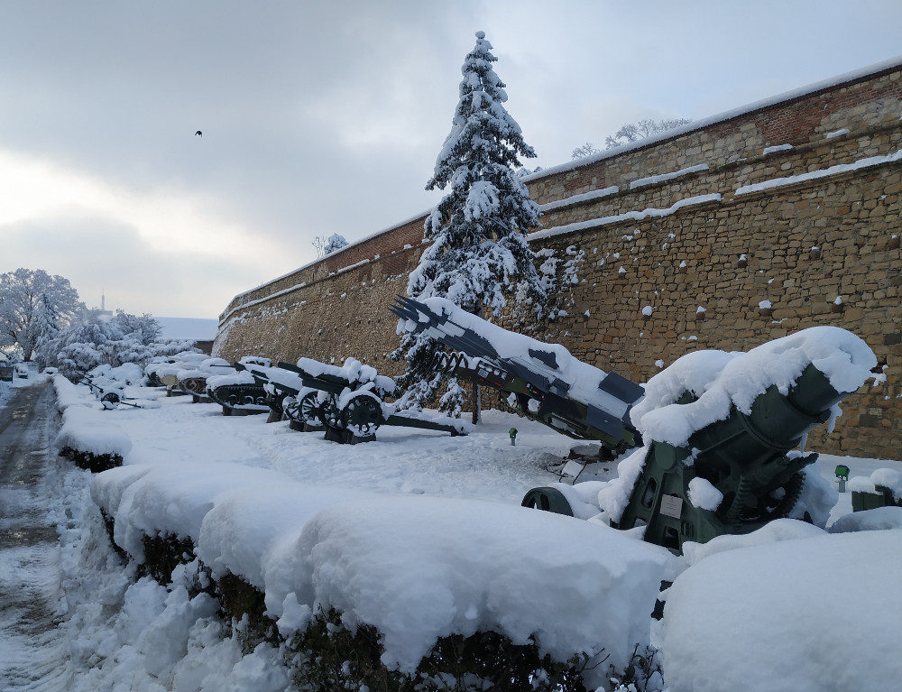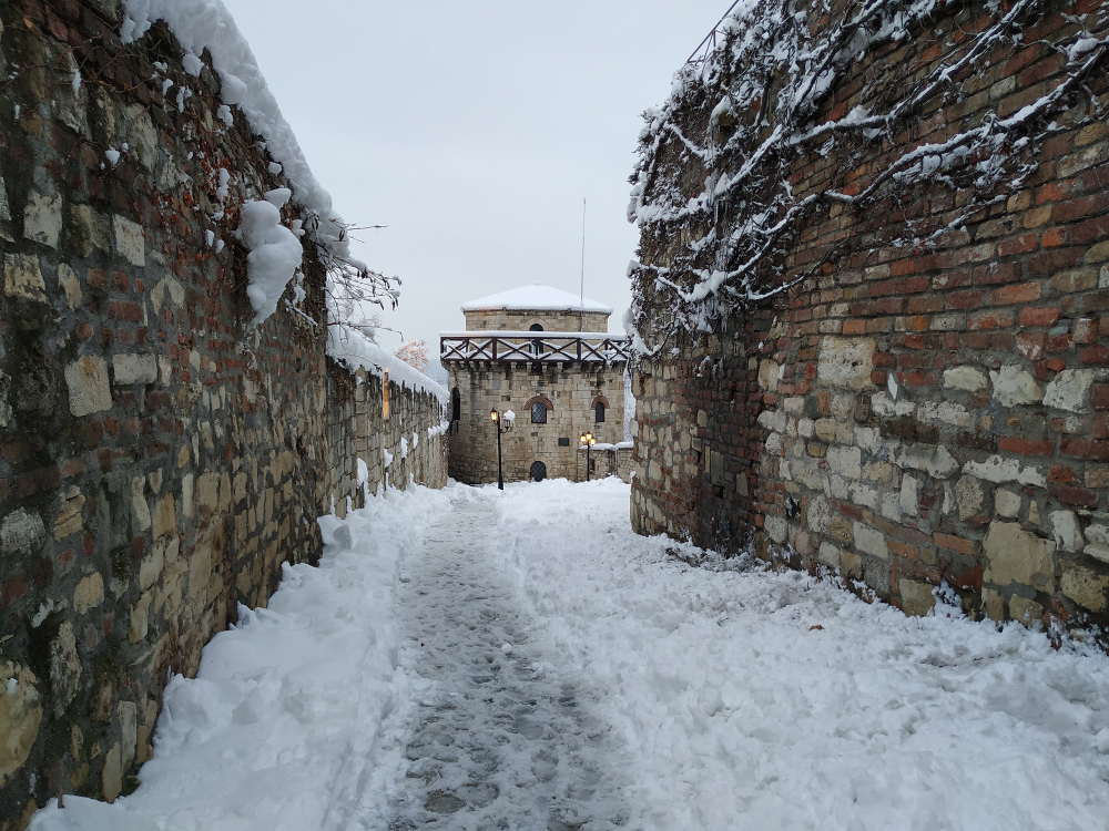 הבוקר יצאנו מוקדם וצעדנו לכיוון מבצר קלמגדן. זה מאד קרוב, אמרה הפקידה הנחמדה במלון, לא יותר מ-20 דקות הליכה. לנו זה לקח שעתיים. לא כי היא הטעתה אותנו, חלילה, אלא כי הכל כל כך יפה בשלג, הבניינים, המדרחוב, הפארק, ואנחנו הלכנו לאט התלהבנו וצילמנו וזרקנו כדורי שלג זו על זו…
